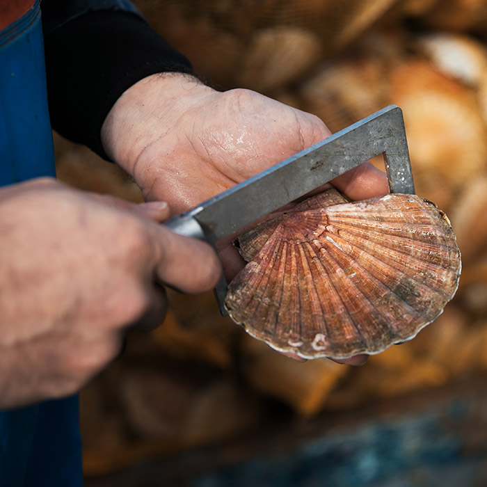 Une fois sortis du port, le vent frais fouette le visage et l’air iodé emplit les poumons. Très vite, l’action commence : les dragues plongent lentement vers le fond, les mains expertes relèvent ensuite les engins, pendant que ceux-ci retrouvent l’eau, les gestes s’enchaînent pour trier la pêche.