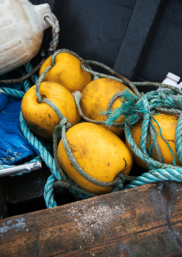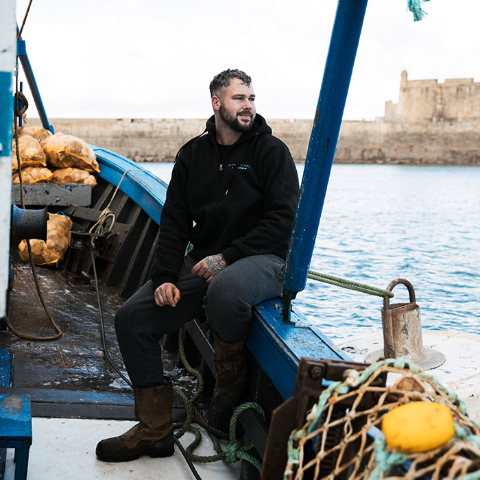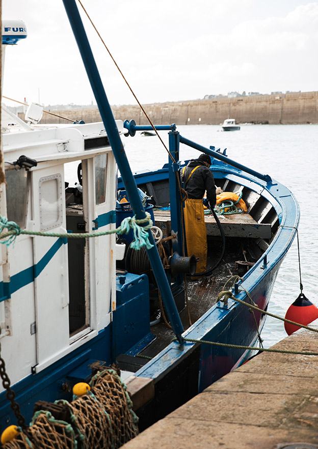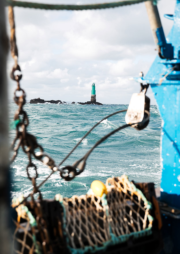 Au moment où le ciel s’éveille en douceur, l’équipage est déjà sur le pont. Le moteur ronronne doucement, le chalut est prêt, les dragues aussi, et chacun prend sa place. À bord, on vit au rythme de la mer : lever avant l’aube, café chaud partagé dans le silence du matin, regards fixés sur le large où tout commence.
